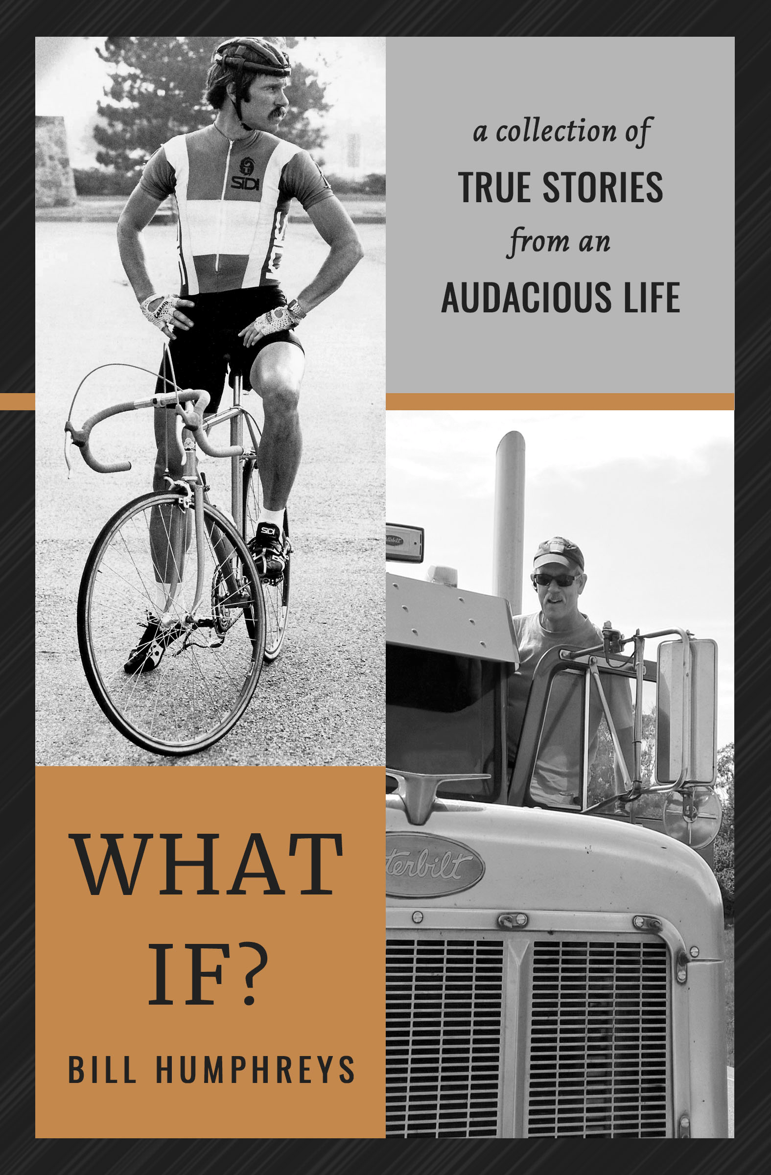 A Collection of True Stories from an Audacious Life. Print copy of What If? book by Bill Humphreys. Shipping is Media Mail (2-8 Business Days). For wholesale inquiries, email Bill at billbikeguy@gmail.com